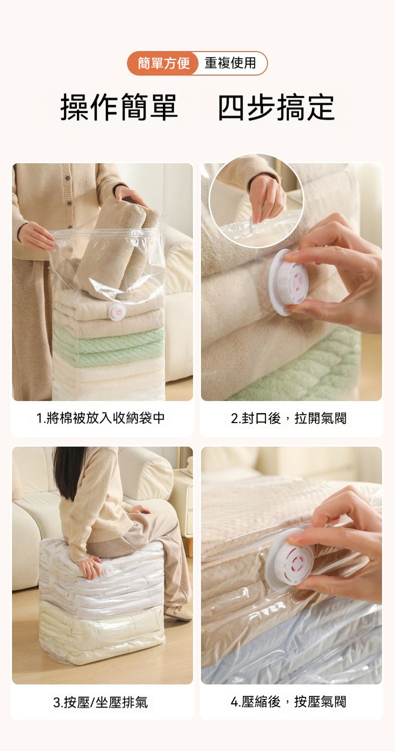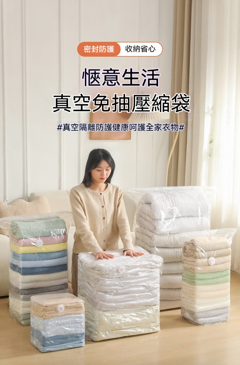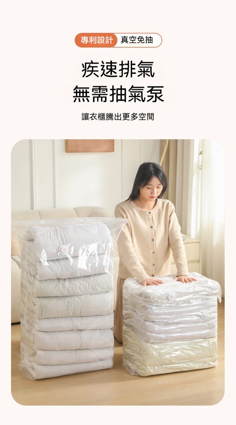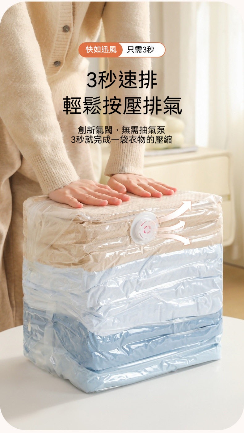 ✨3秒快速壓縮!免抽氣真空收納袋,瞬間多出75%空間✨
